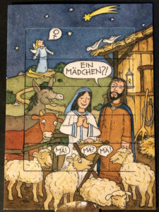 … eine kleine geschichte wie sie gestern, morgen oder heute geschehen könnte. auf den ersten blick erkennen wir eine bestimmte und vertraute situation, die indizien sprechen scheinbar für sich, oder doch nicht?wahrnehmungen verschieben sich, klare bilder lösen sich auf. dimensionen, spekulationen und vermutungen öffnen sich, flüsternde worte hinter vorgehaltener hand sind nicht für alle ohren bestimmt, bleiben aber nicht verborgen.kleine unterschiede könnten die geschichte umschreiben, aber sie sind sich dessen nicht bewusst. die einen sind ratlos, suchen rat in den sternen, die schafe und der esel haben auch eine meinung. und die dritten freuen sich einfach, die erde dreht sich weiter, so oder so?