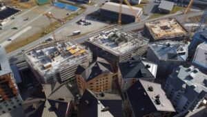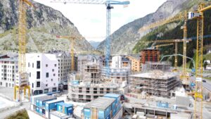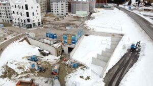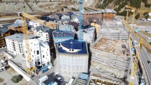 im januar hat der schnee alles zugedeckt, aber schon im februar wurde der bagger unruhig, der schnee musste weg und dann ging es auch bald los mit den drei hoteltürmen und den letzten drei häuser auf dem podium los 3.