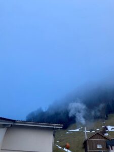 2.5 Stunden später folgten wir den spuren zurück zur bergstation und fuhren mit der gondel wieder unter die nebeldecke.