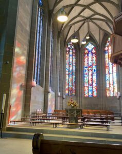treffpunkt war der bahnhof in burgdorf. grosse, mächtig-prächtige bäume säumen den hügel wo die kirche steht. diese war unser erster anlaufpunkt und unsere erste aufgabe war, zugegeben, für pilgerbegleitende ein bisschen ungewöhnlich. wir sollten uns einen baum aussuchen (oder umgekehrt?) und mit einer umarmung mit ihm in kommunikation kommen. wenn du ihm zehn minuten oder länger, zeit gibst, dich wahrzunehmen und du dein herz für ihn offen hast, «hörst» du vielleicht was er dir auf den weg mitgeben möchte.